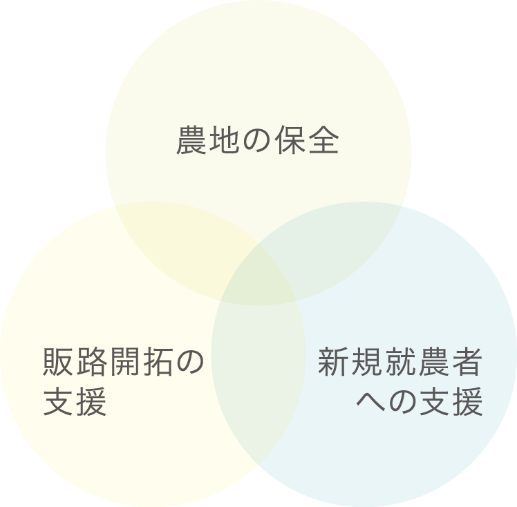 そのために求められていることは、持続可能な農業。守られてきた資源をもとに栽培された作物が、愛される品として流通し、やりがいへと還元されることによって産業が受け継がれ、それが再び土地や景観を守っていくという連続によって循環は持続していきます。その循環に関わるひとつひとつを応援し、変化していく時代に対応しながら育んでいくことが農林業公社のミッションです。